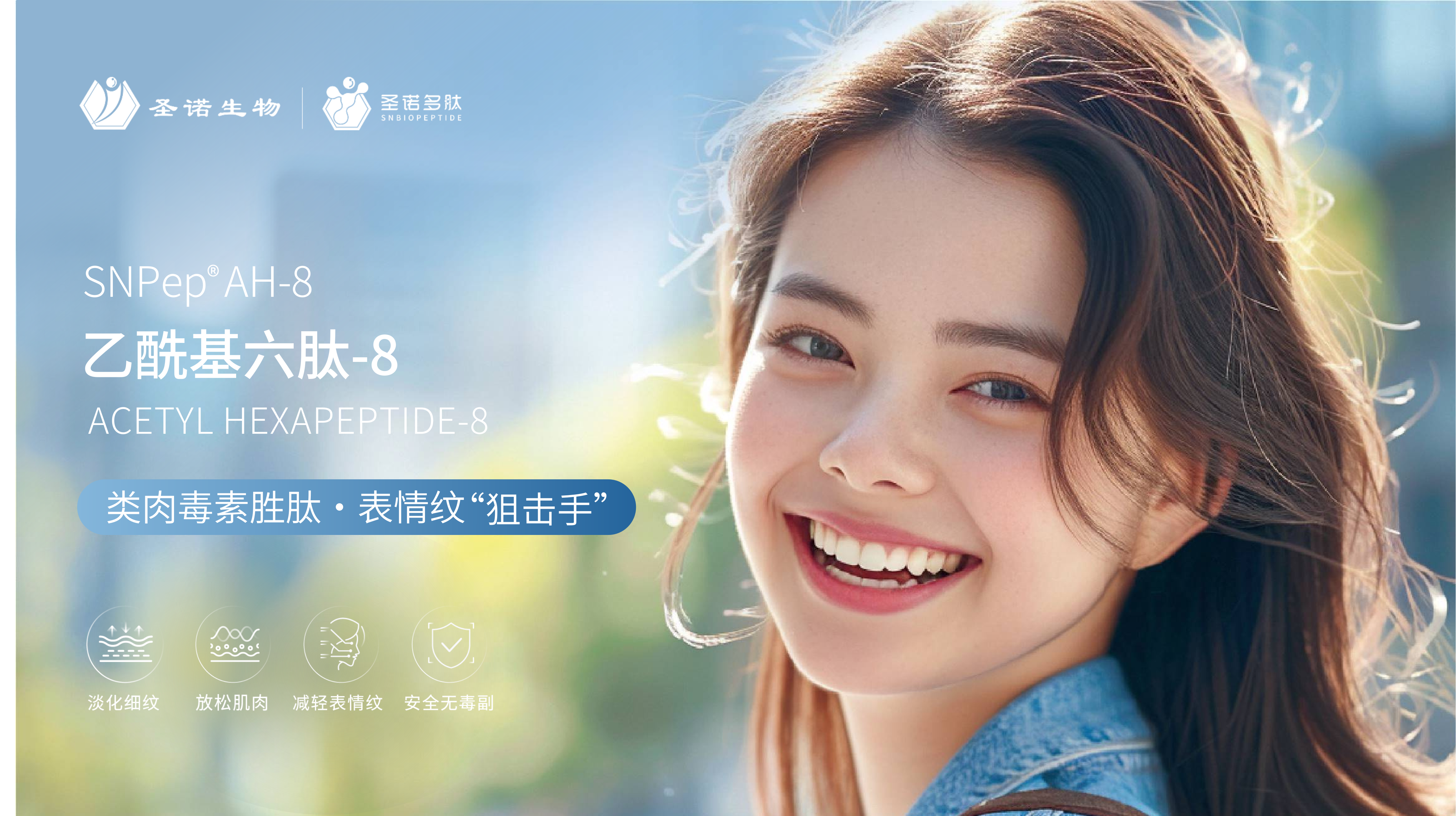 升级版“肉毒素”,抑制神经递质释放,减少表情纹,增加胶原,双效紧致肌肤