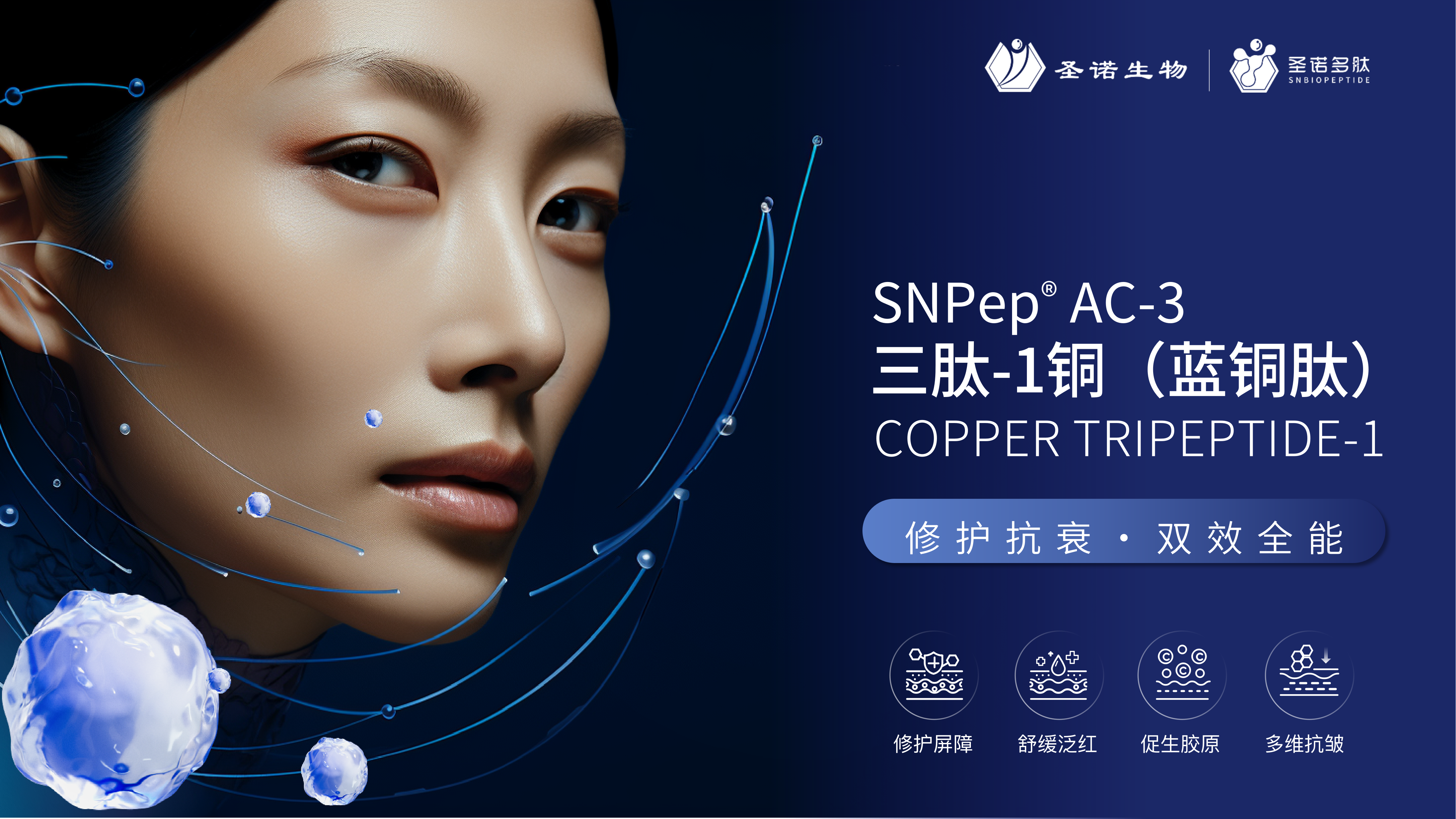 又名“蓝铜胜肽”,促进皮肤组织的生长和修复,促进胶原蛋白合成®®